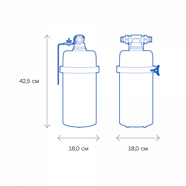 Вес, кг (нетто) изделия4,4Высота, смОбратите внимание на габариты фильтра и измерьте, сколько свободного пространства в предполагаемом месте установки.42,5Механическая фильтрацияЗадерживает ржавчину, ил, песок, как “сито”. Если в фильтре несколько картриджей - первый отсекает самые крупные частицы, а каждый последующий - более мелкие. Существуют картриджи, в которых есть только механическая очистка (полипропиленовые, не “впитывают” растворенные примеси). Они обычно стоят первыми по ходу воды, чтобы продлить жизнь угольным (сорбционным) картриджам, которые ещё и впитывают вредные примеси, как губка.даСорбцияСпособность “впитывать” из воды растворенные, “невидимые” вредные примеси, по принципу губки. Активированный уголь - основной сорбционный материал, который используется в картриджах фильтров для питьевой воды. Например, именно так из воды удаляется хлор.нетФильтрует частицы крупнее, мкмЧем меньше цифра, тем более мелкие частицы способен задержать фильтр. Например, любой фильтр под мойку справится с ржавчиной, илом и песком, но не каждый - с бактериями (на это способен картридж с половолоконной мембраной и системы обратного осмоса). Если в фильтре несколько картриджей - первый отсекает самые крупные частицы, а каждый последующий - более мелкие. Цифра указана для картриджа самой тонкой очистки.5,0Фильтрующий модуль в комплектедаДавление в водопроводе не более, атмМаксимальное давление воды на входе в систему, при котором возможна стабильная работа фильтра.6,5Ширина, смОбратите внимание на габариты фильтра, и измерьте, сколько свободного пространства в предполагаемом месте установки.18,0Глубина, смОбратите внимание на габариты фильтра, и измерьте, сколько свободного пространства в предполагаемом месте установки.18,0Защита корпуса от гидроударовдаСкорость фильтрации, л/минСкорость подачи отфильтрованной воды из крана чистой воды на мойке. Например, при скорости фильтрации 2,5 литра/минуту стакан 200 мл. наполнится меньше, чем за 10 секунд.15,0КомплектацияГотовый фильтр состоит из корпуса и картриджа для очистки воды. Если вы приобретаете только корпус, необходимо отдельно купить подходящий к нему картридж: это может быть картридж для механической очистки воды от ржавчины, картридж для глубокой очистки воды от хлора.готовый фильтрВодаКартриджи и корпуса фильтров рассчитаны на определенную температуру воды. Данные технические характеристики важно учитывать, поскольку от этого зависит качество очистки и срок службы фильтра.холоднаяМатериал корпусаПищевой пластик: Допущен к контакту с пищевыми продуктами. Нержавеющая сталь: Долговечный и безопасный корпус из нержавеющей пищевой стали.нержавеющая стальОчисткаМеханическая очистка: Задерживает ржавчину, ил, песок, как “сито”. В корпусе предфильтра с механической очисткой установлен полипропиленовый модуль. Глубокая очистка: Подходит, чтобы купать детей в чистой воде. Делает прием душа и умывание более приятным. Фильтр глубокой очистки воды во всей квартире не только останавливает ржавчину, ил, песок, но и впитывает растворенные опасные примеси, как губка. Удаляет из воды хлор, хлорорганические вещества, пестициды и другие загрязнители.механическаяПрозрачный корпуснетДля горячей водыКартриджи и корпуса фильтров рассчитаны на определенную температуру воды. Данные 